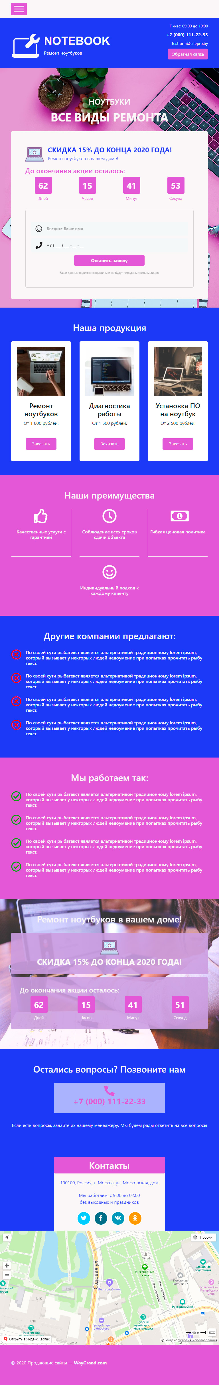 Закажите готовый продающий сайт лендинг #0719201 в Каменск-Уральском за 1-3 дня «под ключ»: свёрстан, отрисован и готов к рекламе. Тематика шаблона «Ремонт ноутбуков».
