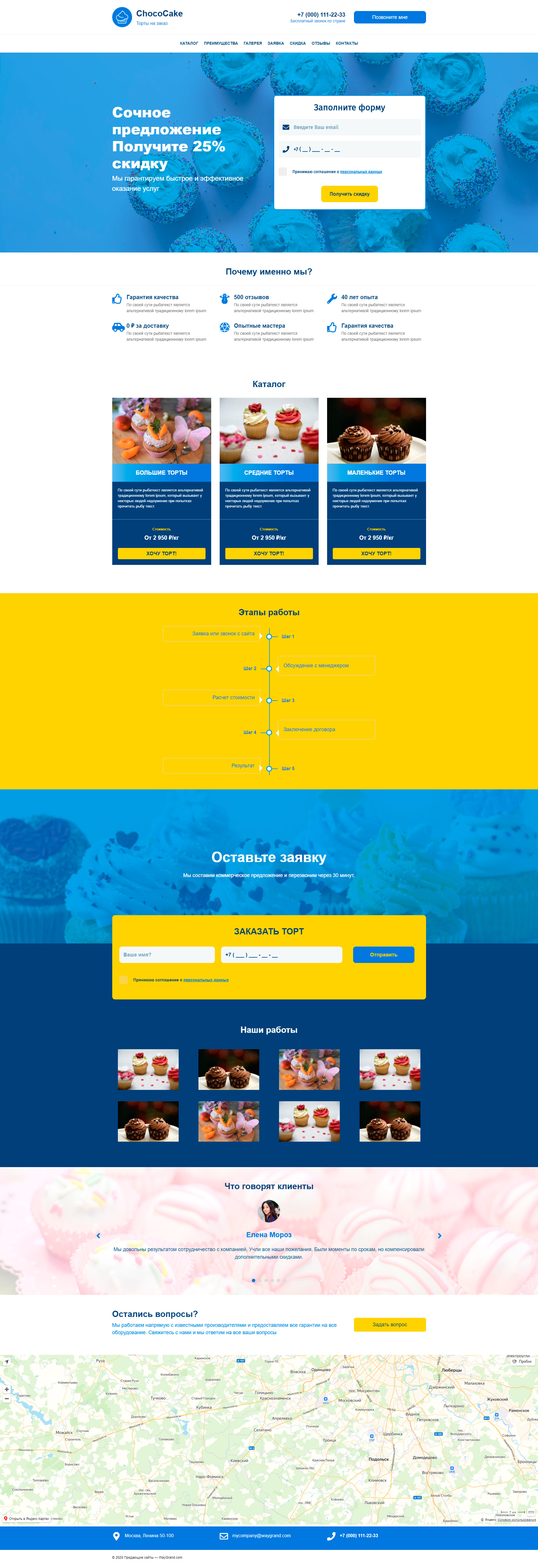 Закажите готовый продающий сайт лендинг #1711205 в Каменск-Уральском за 1-3 дня «под ключ»: свёрстан, отрисован и готов к рекламе. Тематика шаблона «Торты на заказ».