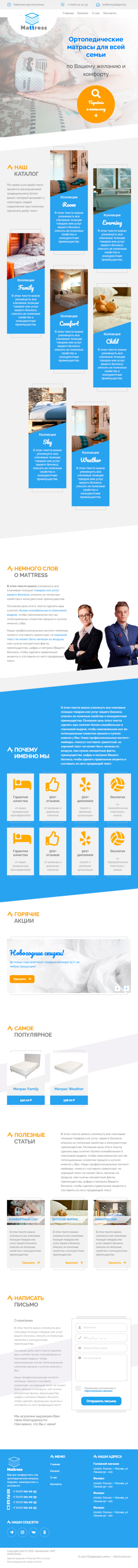 Закажите готовый продающий сайт лендинг #0907201 в Каменск-Уральском за 1-3 дня «под ключ»: свёрстан, отрисован и готов к рекламе. Тематика шаблона «Матрасы».