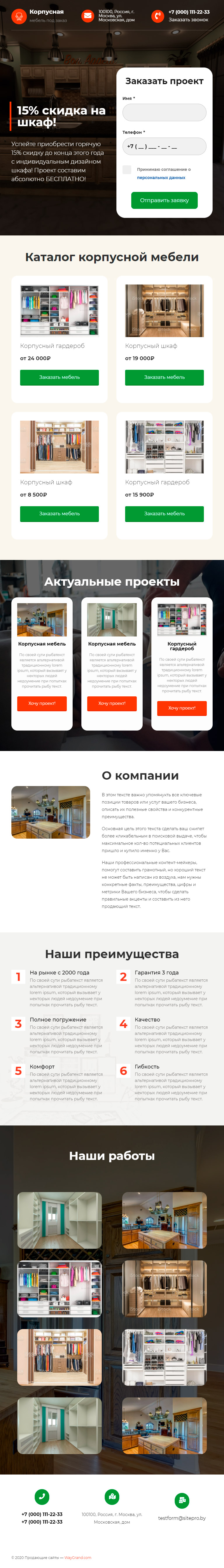Закажите готовый продающий сайт лендинг #0915204 в Каменск-Уральском за 1-3 дня «под ключ»: свёрстан, отрисован и готов к рекламе. Тематика шаблона «Корпусная мебель».