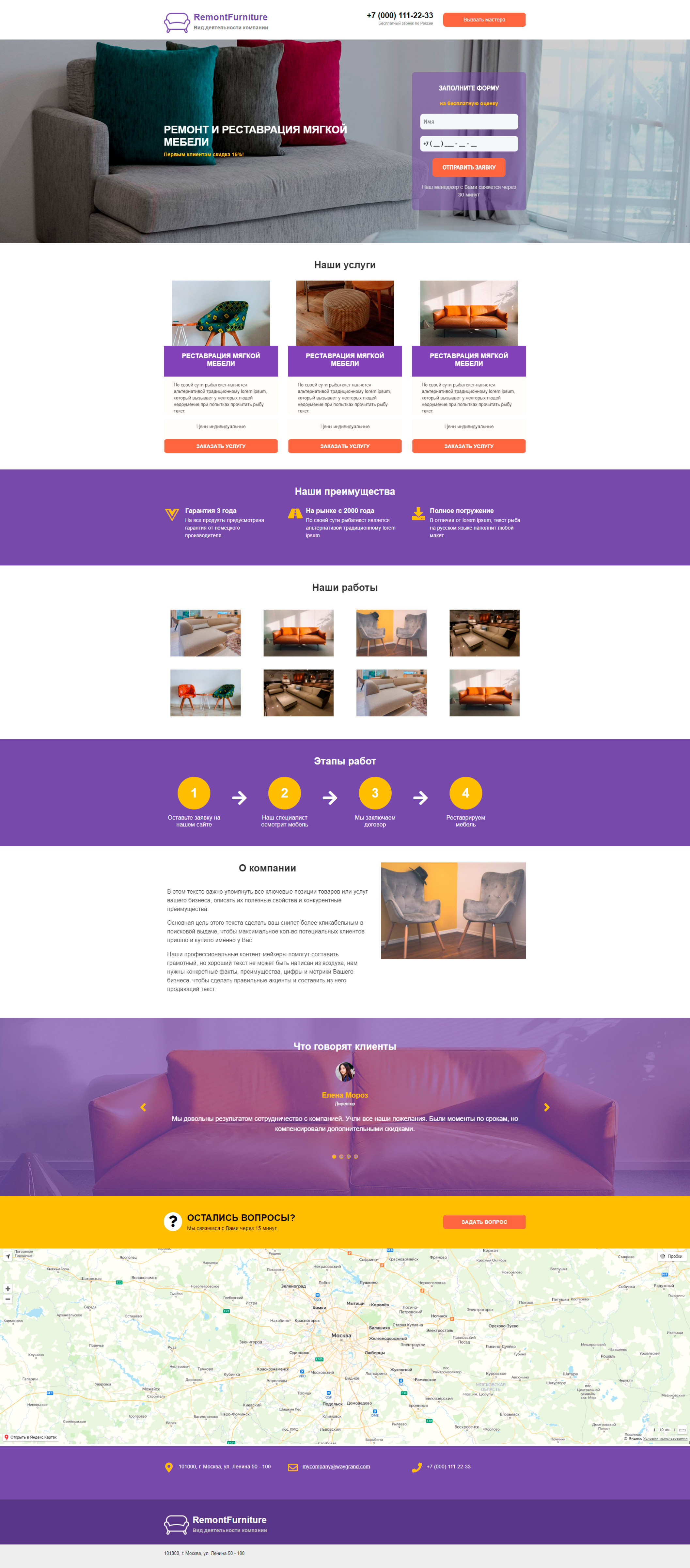 Закажите готовый продающий сайт лендинг #0924201 в Каменск-Уральском за 1-3 дня «под ключ»: свёрстан, отрисован и готов к рекламе. Тематика шаблона «Ремонт и реставрация мебели».