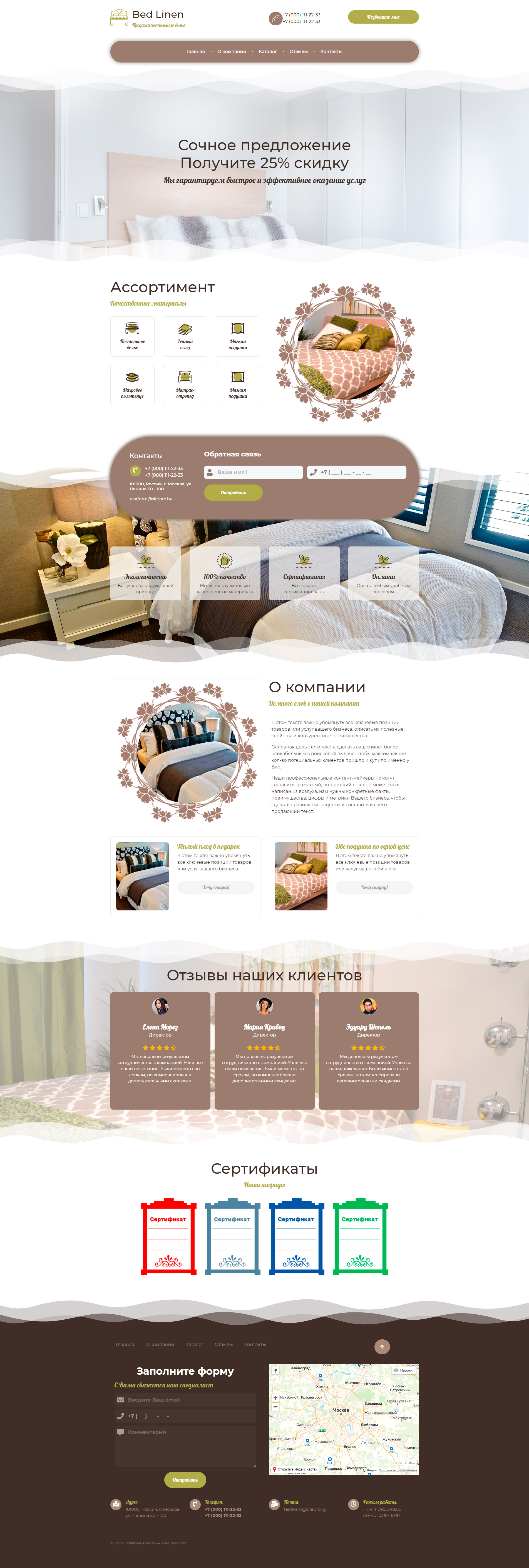 Закажите готовый продающий сайт лендинг #2210202 в Каменск-Уральском за 1-3 дня «под ключ»: свёрстан, отрисован и готов к рекламе. Тематика шаблона «Постельное белье».