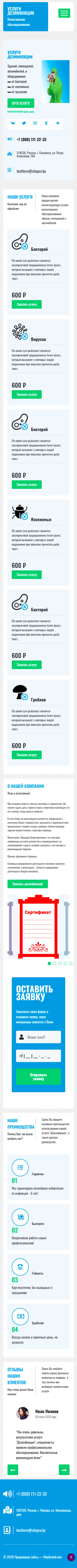 Закажите готовый продающий сайт лендинг #0608201 в Каменск-Уральском за 1-3 дня «под ключ»: свёрстан, отрисован и готов к рекламе. Тематика шаблона «Услуги дезинфекции».