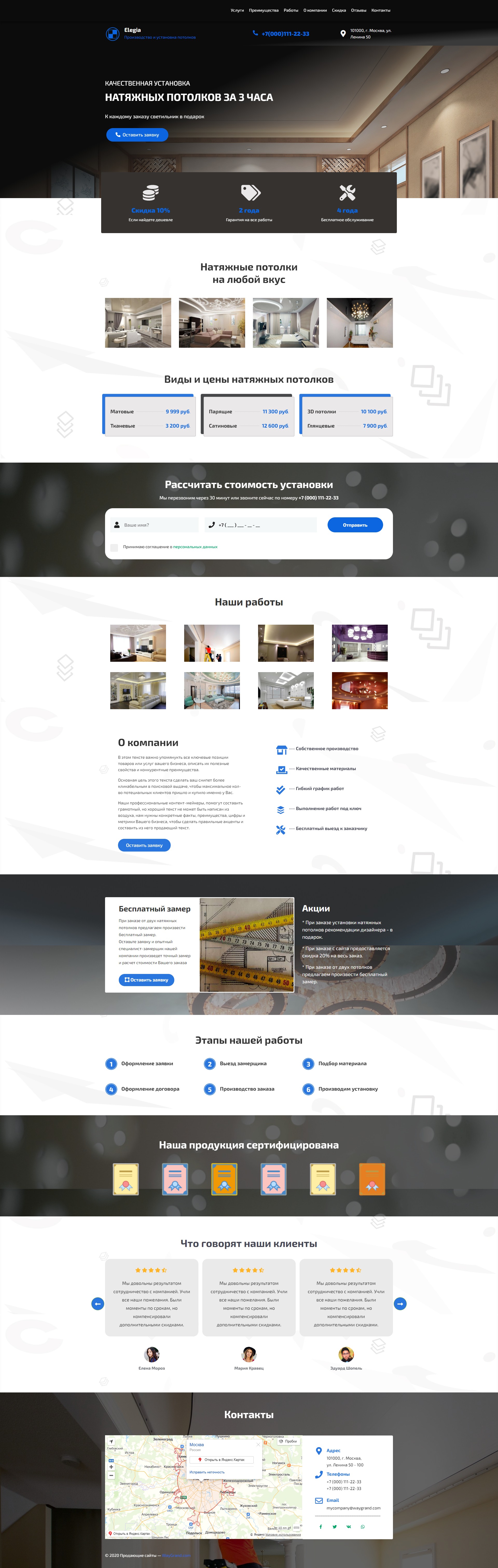 Закажите готовый продающий сайт лендинг #2029202 в Каменск-Уральском за 1-3 дня «под ключ»: свёрстан, отрисован и готов к рекламе. Тематика шаблона «Натяжные потолки».