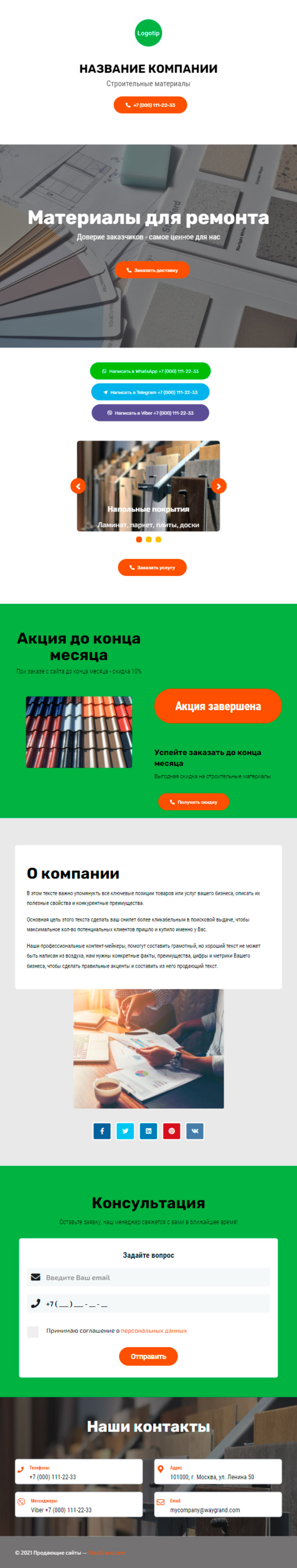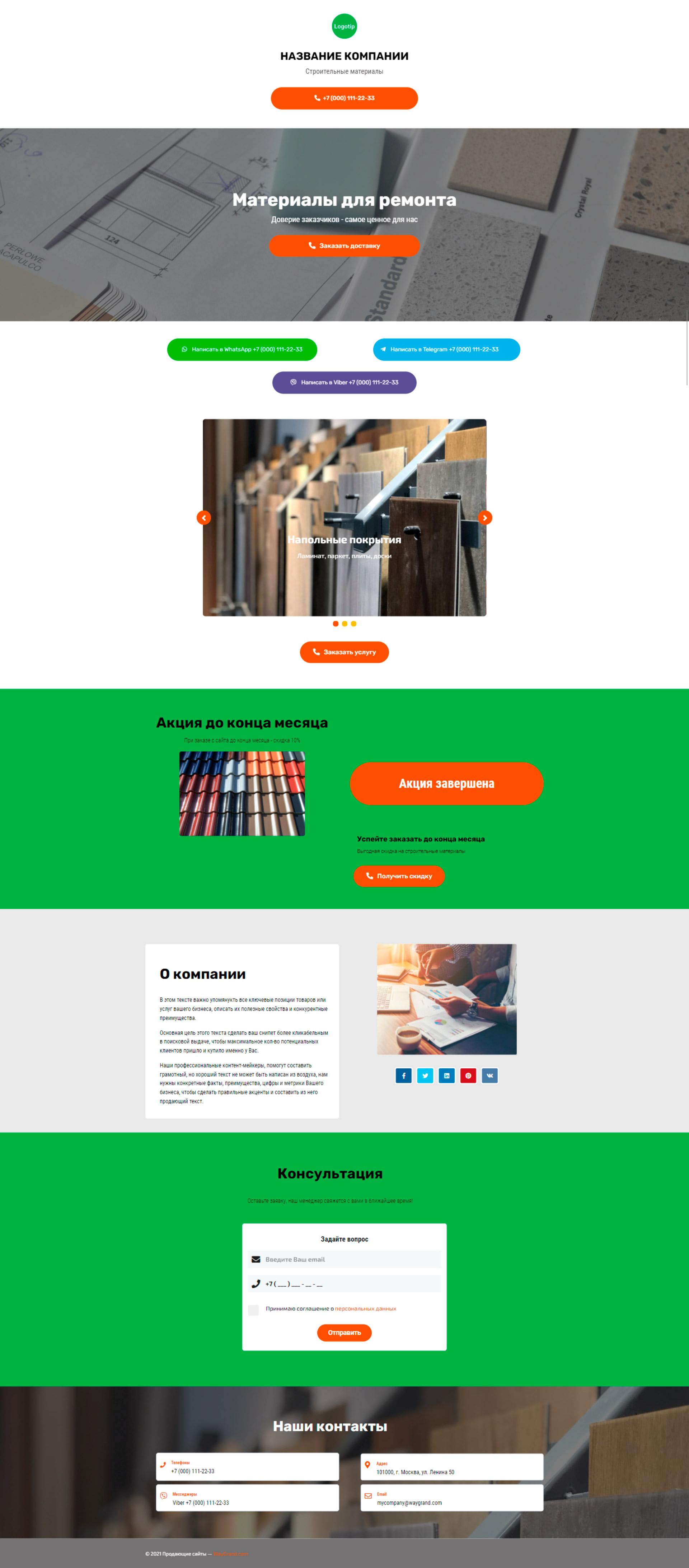 Закажите готовый продающий сайт визитка #2050101 в Каменск-Уральском за 5-7 дня «под ключ»: свёрстан, отрисован и готов к рекламе. Тематика шаблона «Строительные материалы».