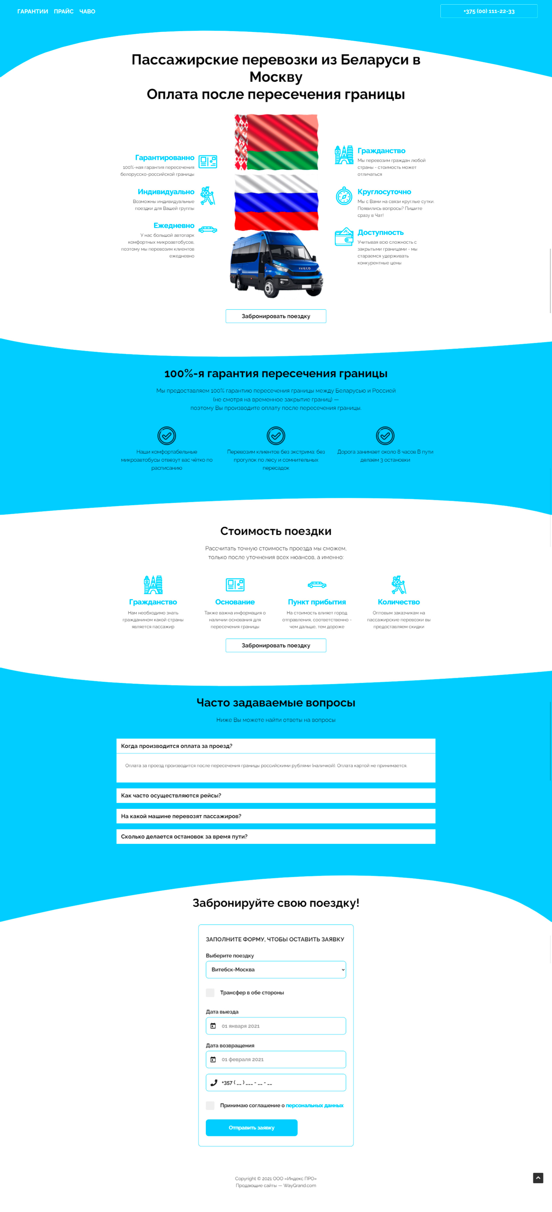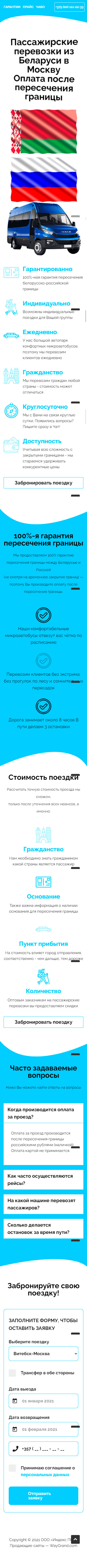 Закажите готовый продающий сайт лендинг #2528204 в Каменск-Уральском за 1-3 дня «под ключ»: свёрстан, отрисован и готов к рекламе. Тематика шаблона «Пассажирские перевозки из Беларуси в Москву».