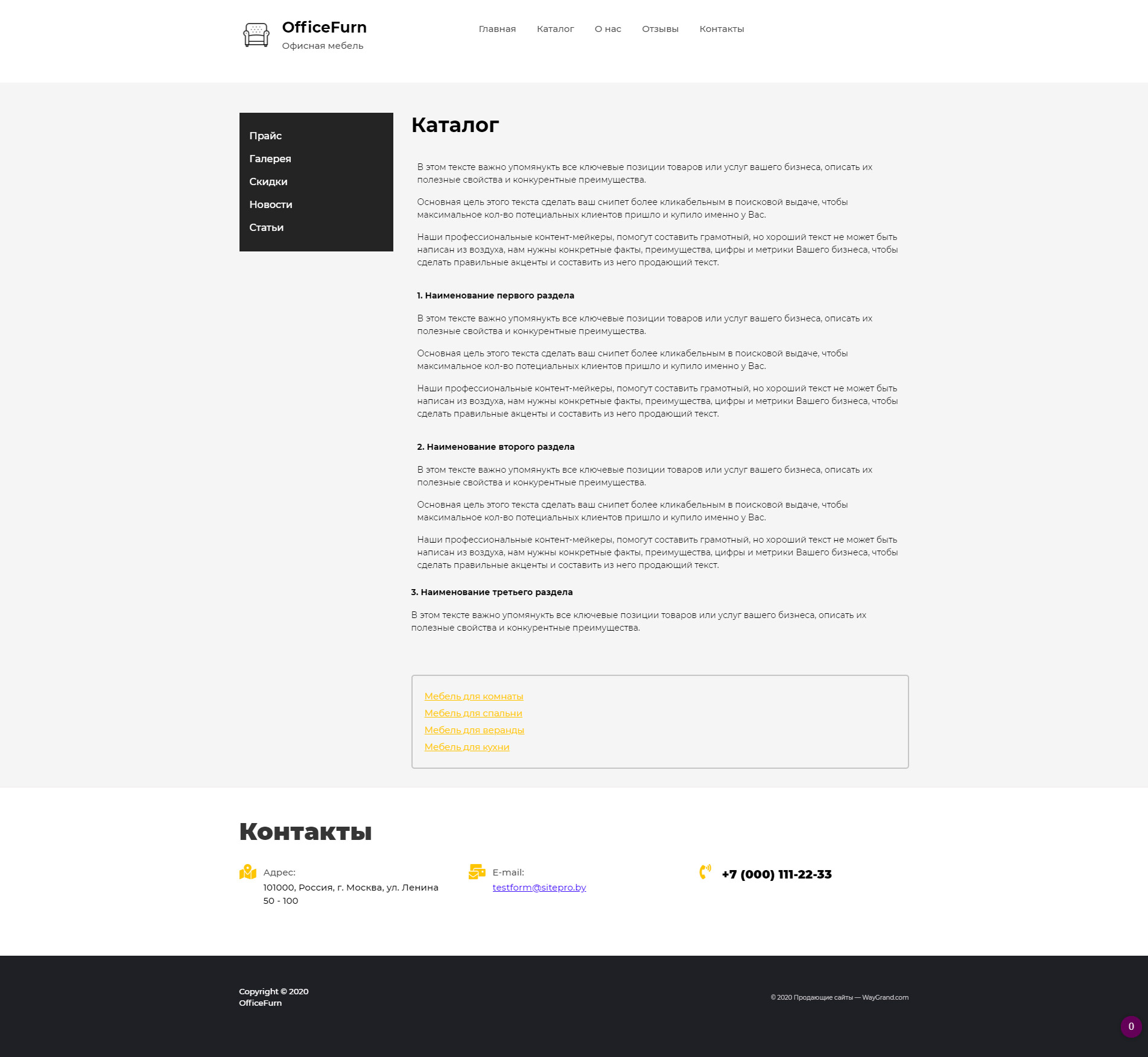 Закажите готовый продающий сайт визитка #0921301 в Каменск-Уральском за 5-7 дня «под ключ»: свёрстан, отрисован и готов к рекламе. Тематика шаблона «Офисная мебель».