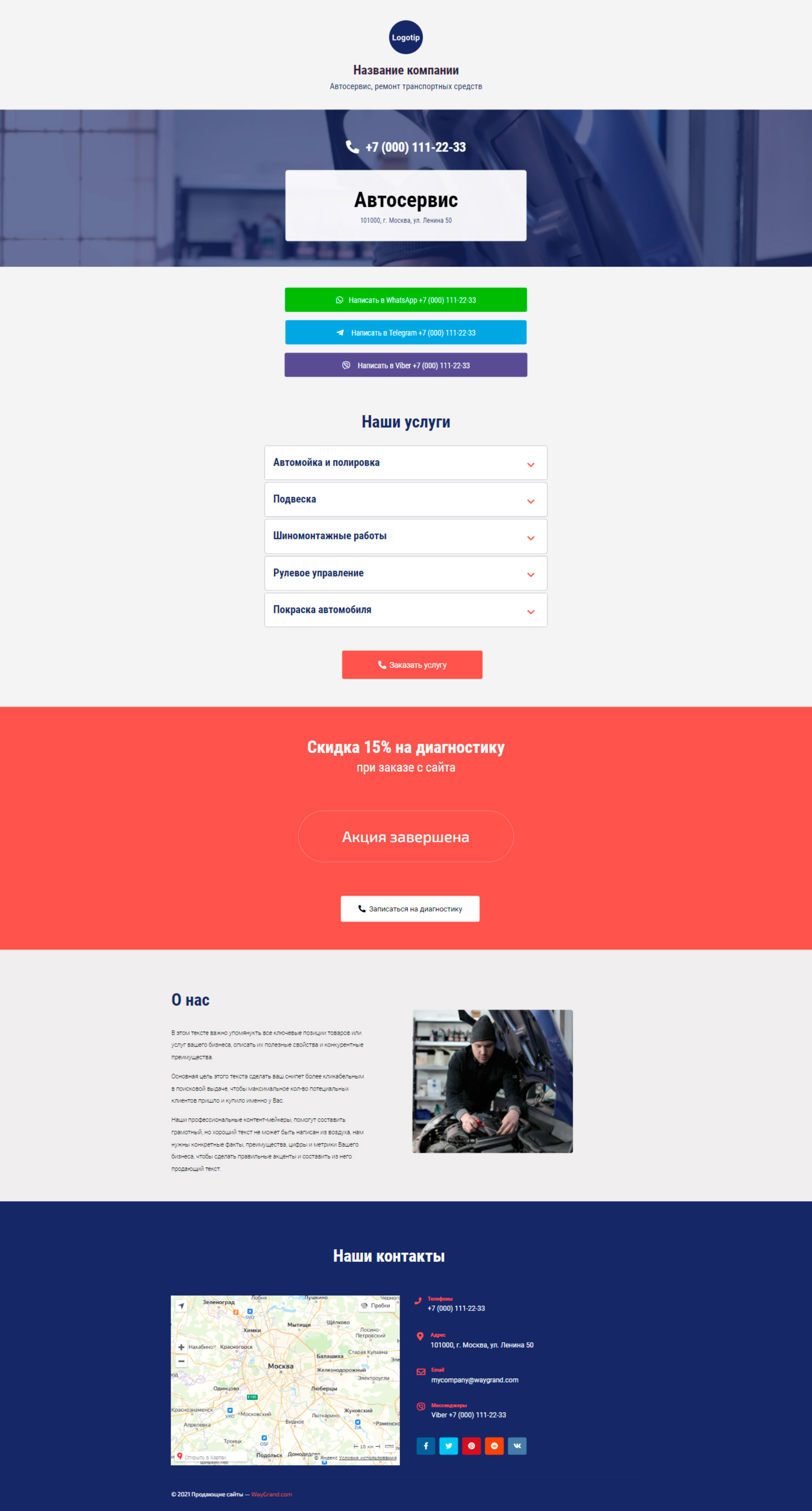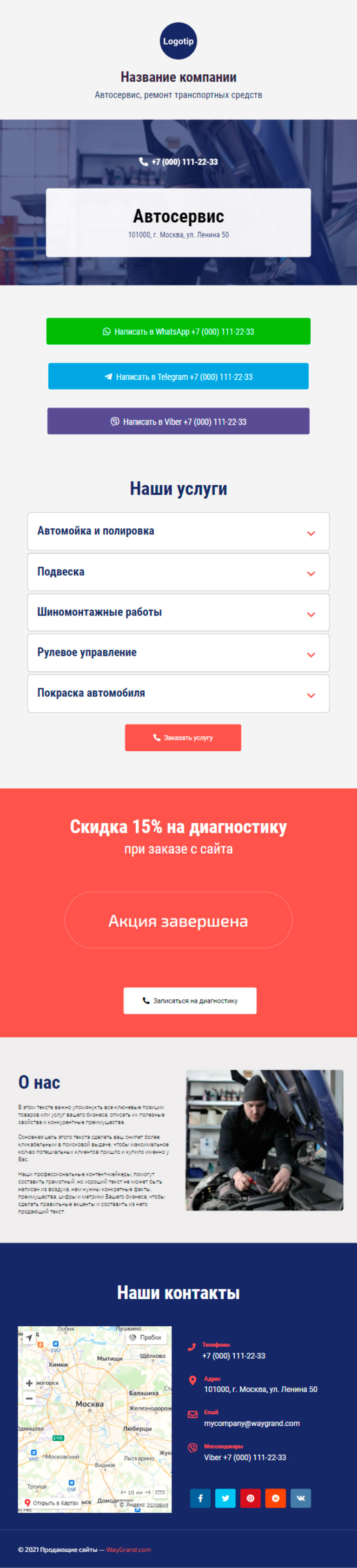 Закажите готовый продающий сайт визитка #0210101 в Каменск-Уральском за 5-7 дня «под ключ»: свёрстан, отрисован и готов к рекламе. Тематика шаблона «Автосервис, ремонт транспортных средств».