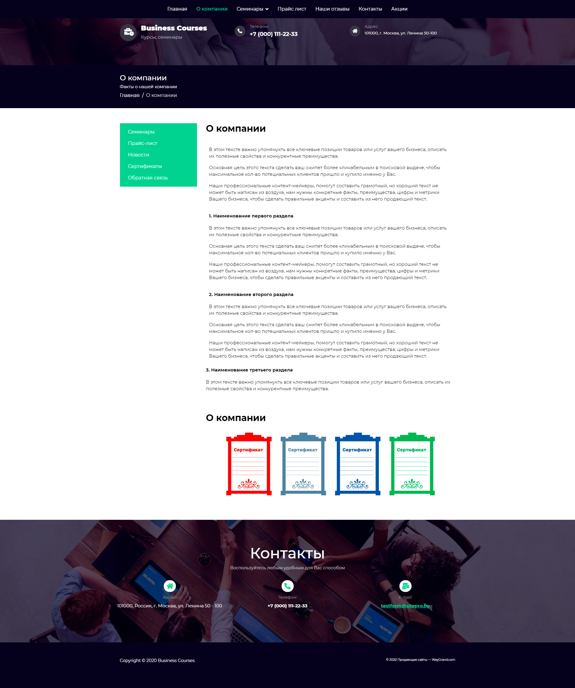 Закажите готовый продающий сайт визитка #1448303 в Каменск-Уральском за 5-7 дня «под ключ»: свёрстан, отрисован и готов к рекламе. Тематика шаблона «Бизнес курсы и семинары».