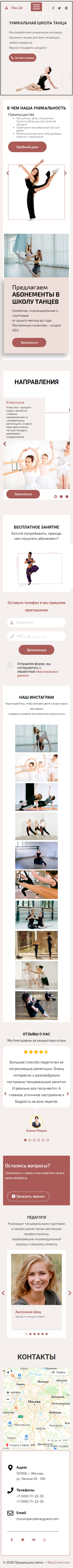 Закажите готовый продающий сайт лендинг #1923202 в Каменск-Уральском за 1-3 дня «под ключ»: свёрстан, отрисован и готов к рекламе. Тематика шаблона «Школа танцев».