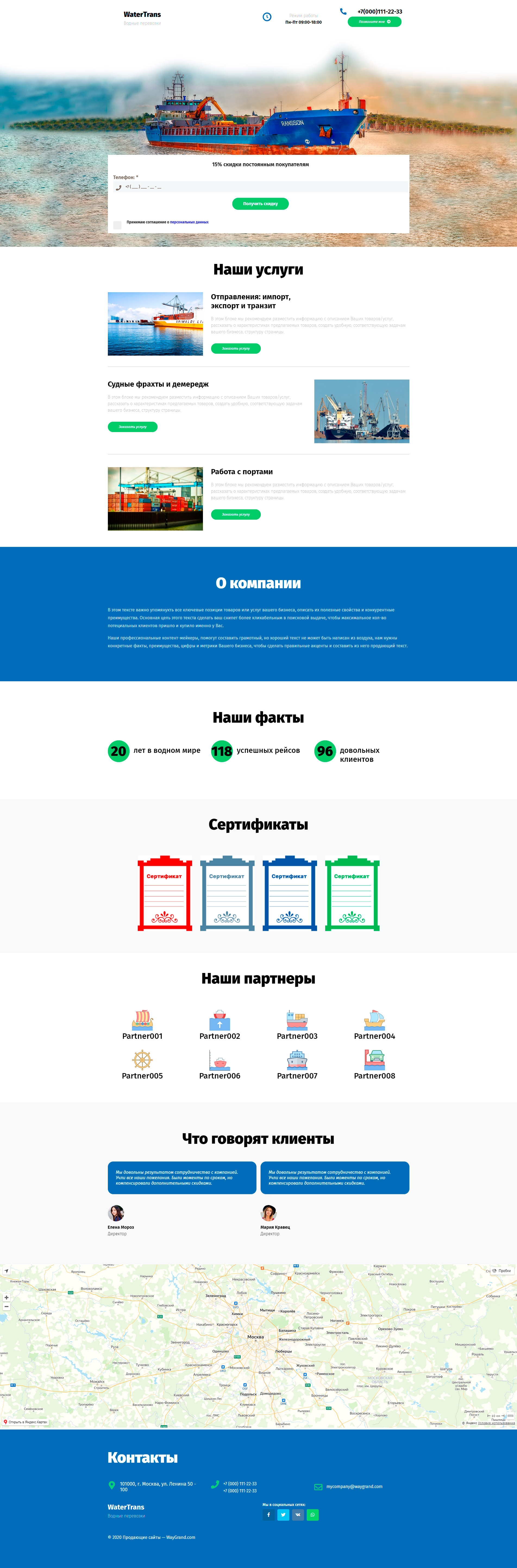 Закажите готовый продающий сайт лендинг #1908201 в Каменск-Уральском за 1-3 дня «под ключ»: свёрстан, отрисован и готов к рекламе. Тематика шаблона «Морские перевозки».