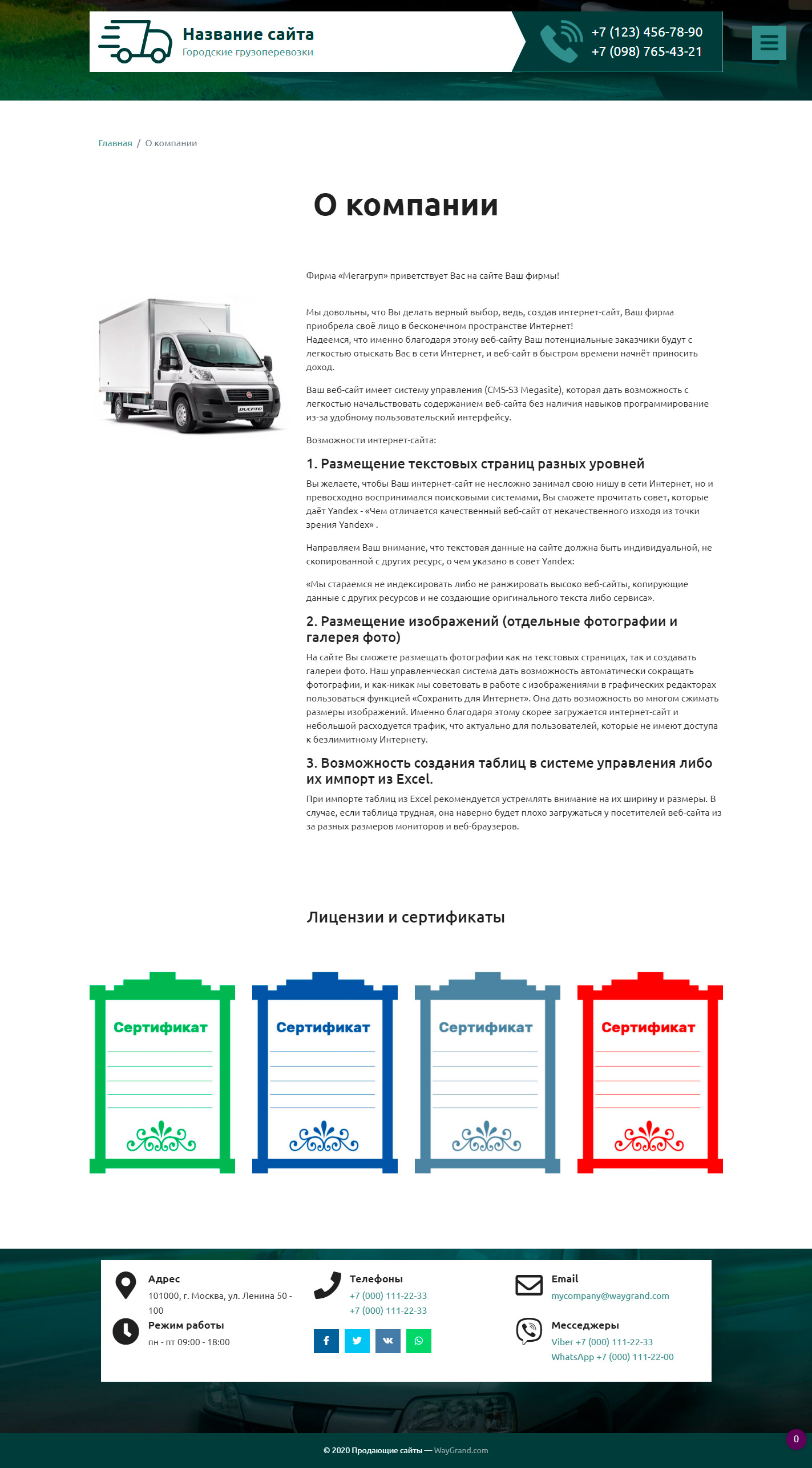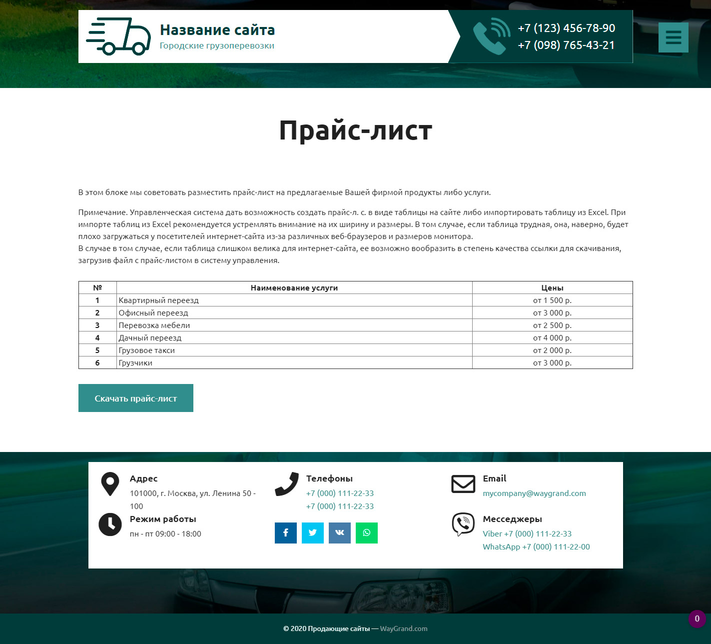 Закажите готовый продающий сайт визитка #2515302 в Каменск-Уральском за 5-7 дня «под ключ» по доступным ценам на WayGrand: свёрстан, отрисован и готов к рекламе. Тематика шаблона «Городские грузоперевозки».