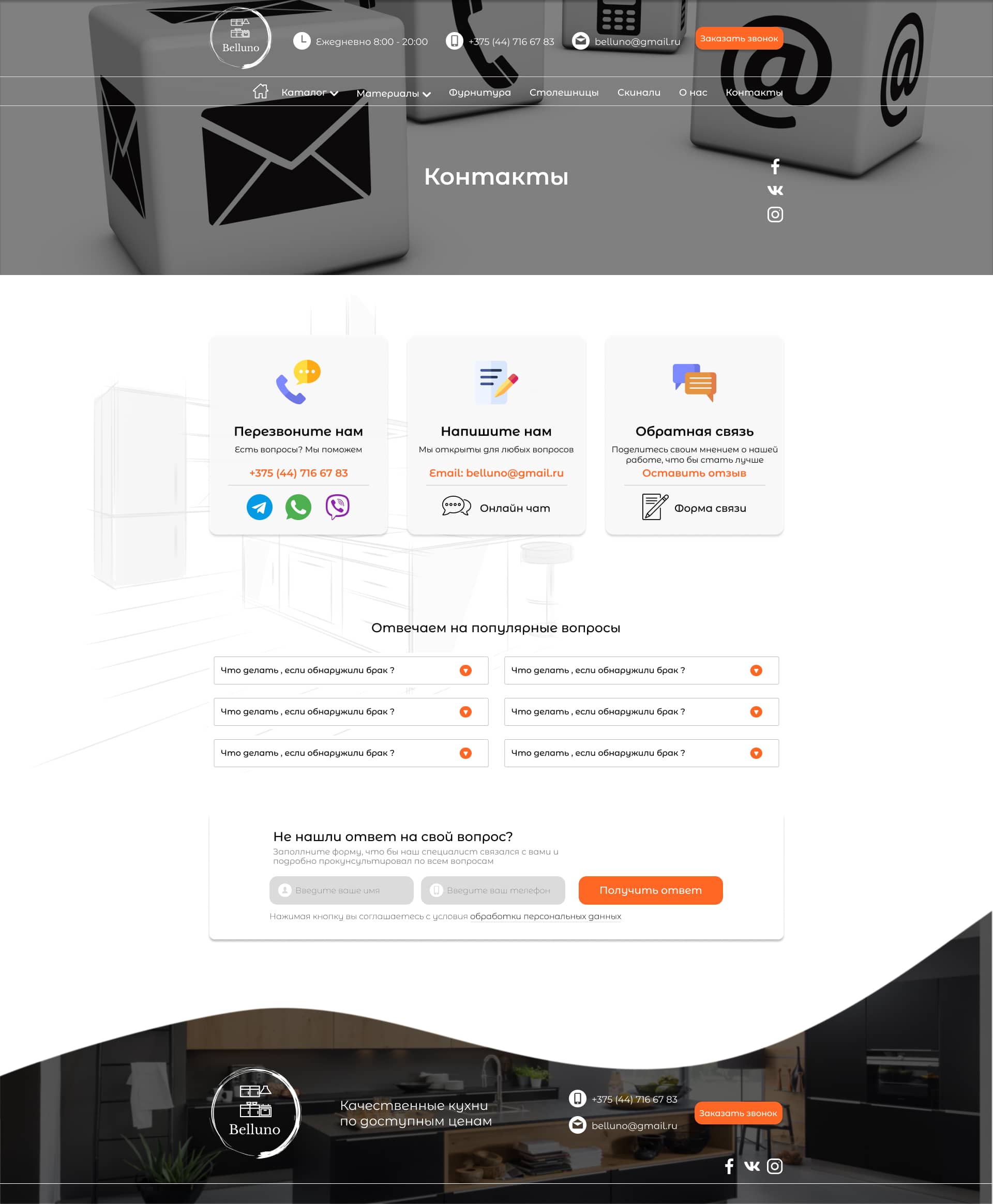 Закажите готовый продающий сайт визитка #282 в Каменск-Уральском за 5-7 дня «под ключ»: свёрстан, отрисован и готов к рекламе. Тематика шаблона «Кухни».