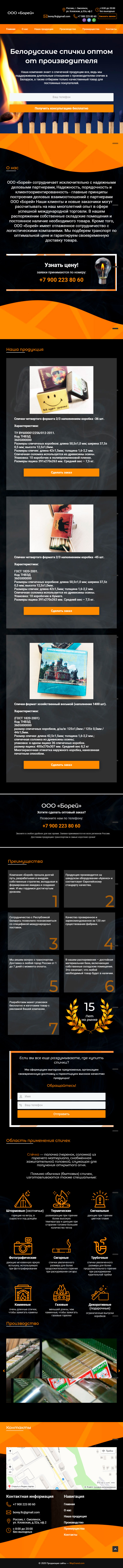 Закажите готовый продающий сайт лендинг #115 в Каменск-Уральском за 1-3 дня «под ключ»: свёрстан, отрисован и готов к рекламе. Тематика шаблона «Белорусские спички оптом от производителя».