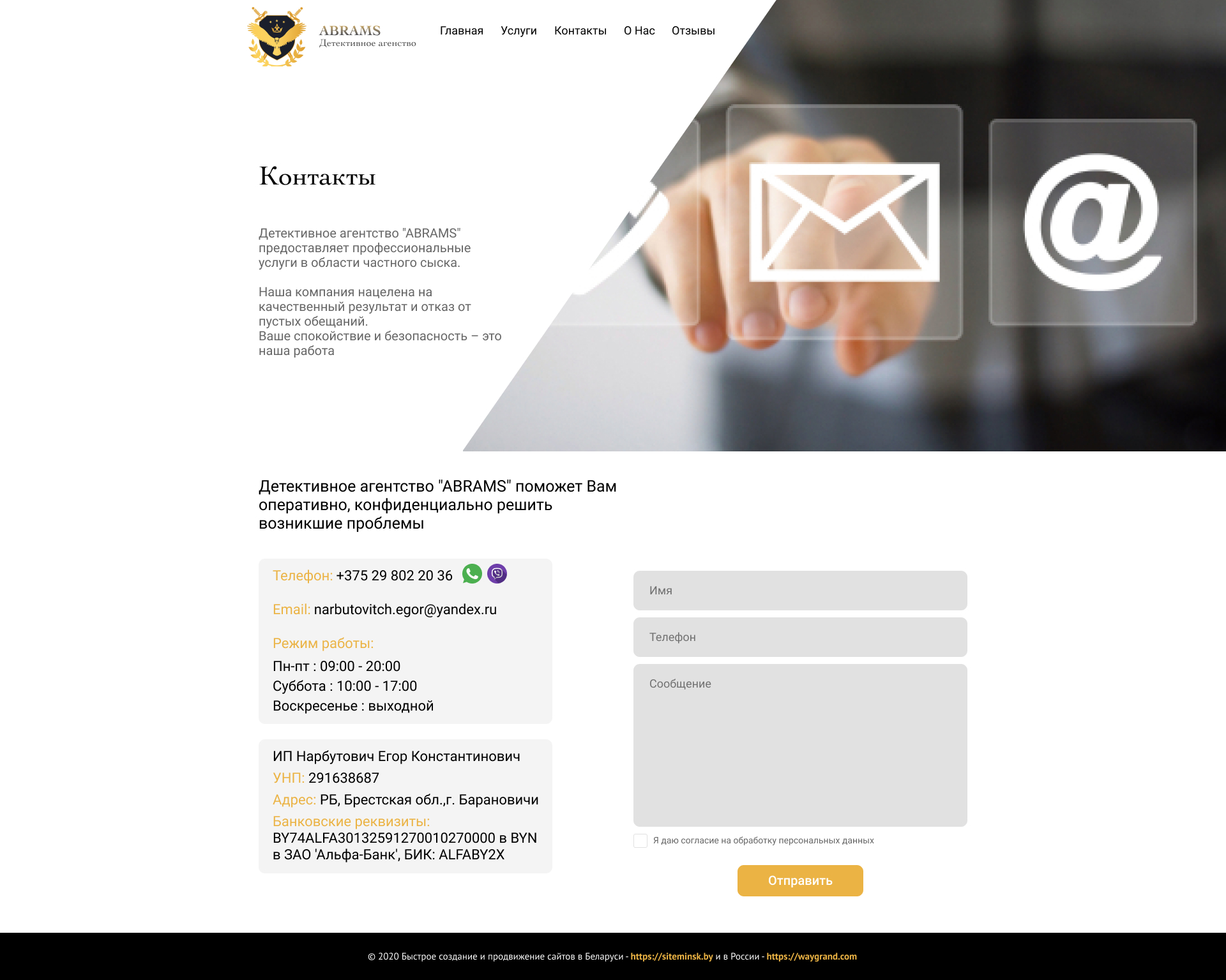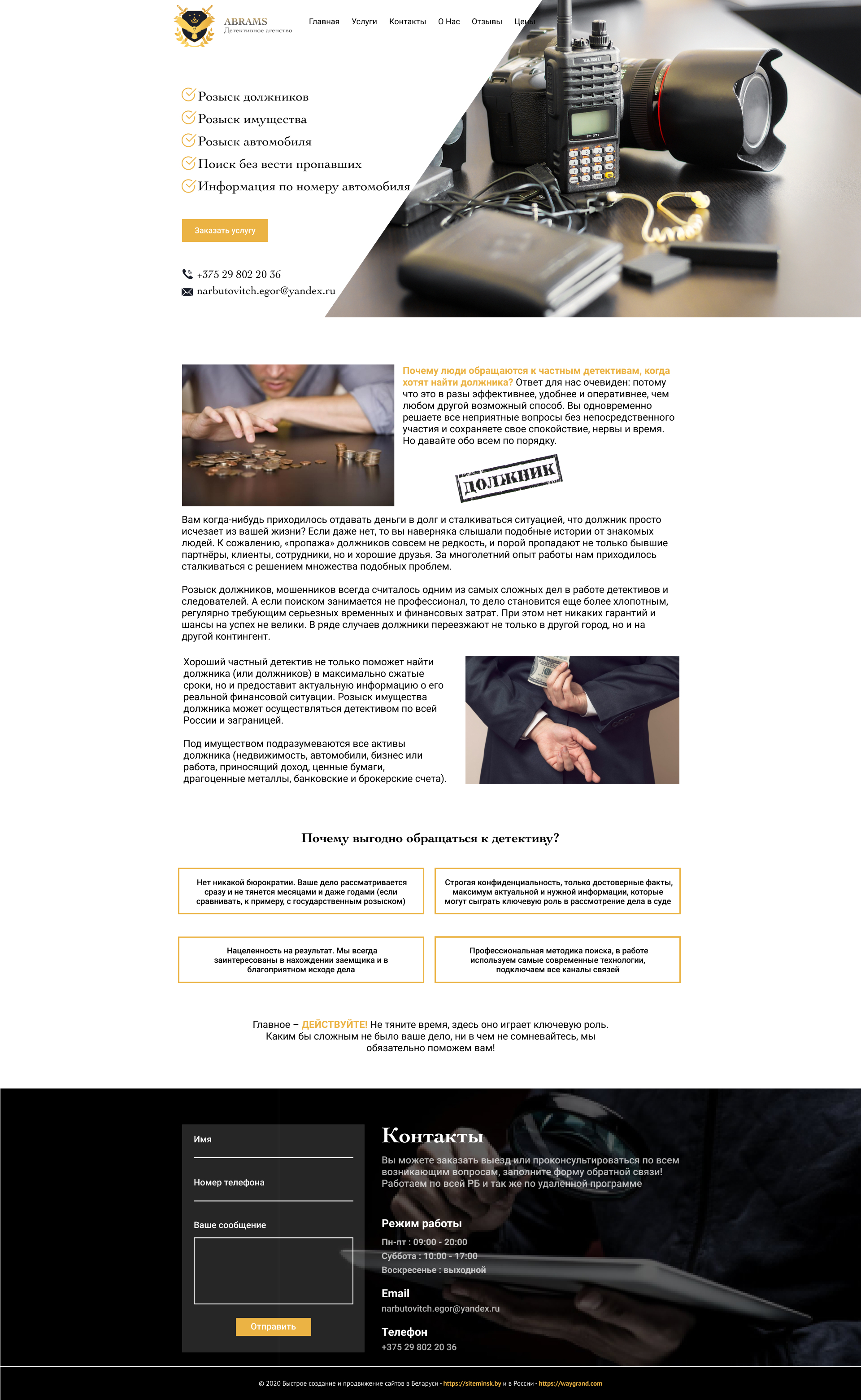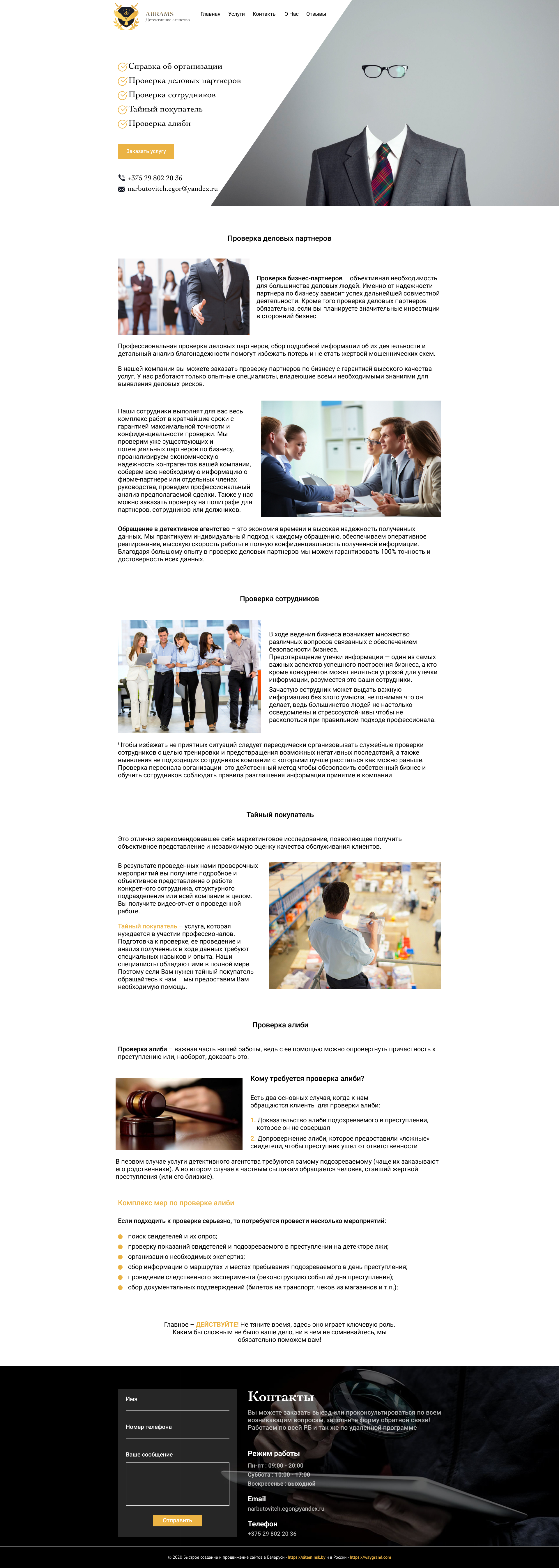 Закажите готовый продающий сайт визитка #239 в Каменск-Уральском за 5-7 дня «под ключ»: свёрстан, отрисован и готов к рекламе. Тематика шаблона «Частное детективное агентство».